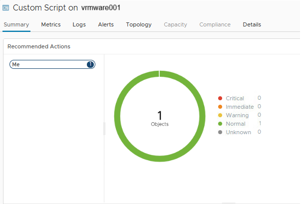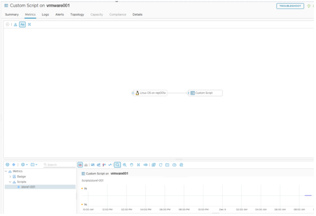 If the status is normal, go to the Metrics tab, Metrics, Scripts, Custom Script (store1-001). Double click on the Custom Script and there is the Metric value.
